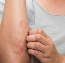 – Đồng thời, cơ thể xuất hiện những mảng sần, mọng nước có kích cỡ khác nhau, có bờ ranh giới rõ ràng, riêng lẻ, dễ trầy xước và tiết dịch làm lở loét. Các triệu chứng này kéo dài 3-6 tuần và biến mất.
